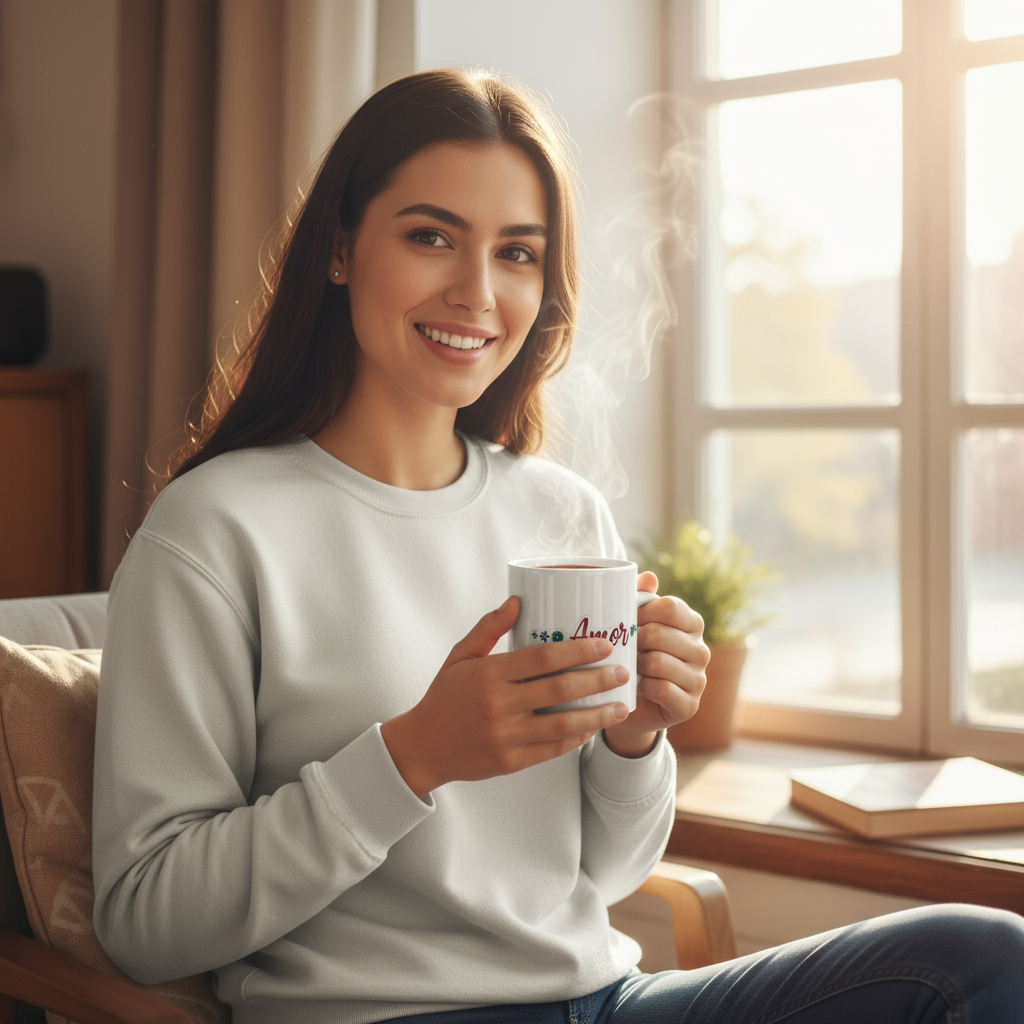 This mug is crafted from high-quality white ceramic, holding 11oz (325ml) — the perfect size for morning coffee, afternoon tea, or evening cocoa. Its glossy surface ensures vivid print colors and a smooth touch. The ergonomic C-handle provides comfort and stability with every sip. Designed for everyday durability, this mug is microwave and dishwasher safe. Rounded corners add to its clean, timeless look, making it a staple piece for home or office use.